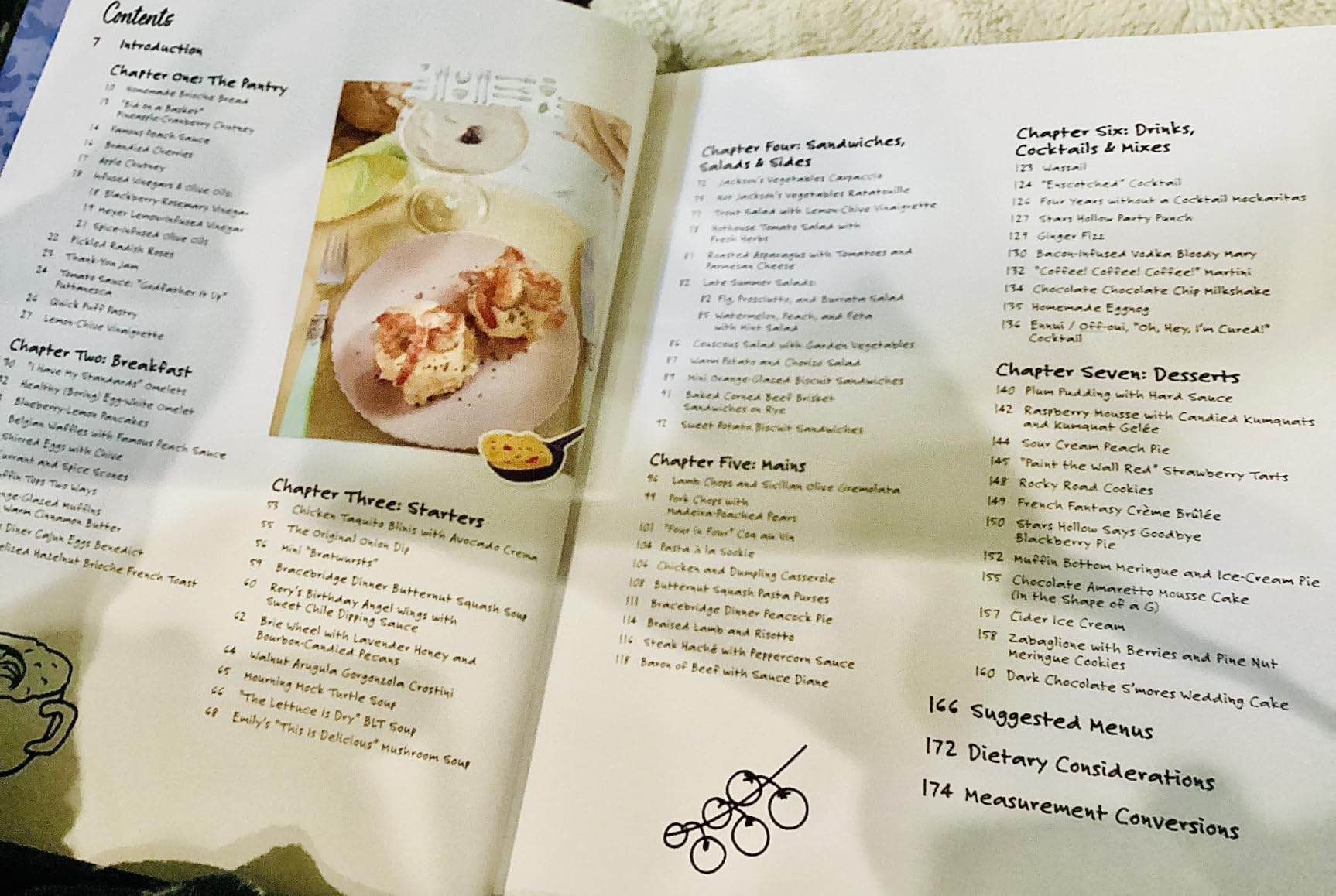 Over 75 show-inspired dishes—from breakfast (Blueberry-Lemon Pancakes, Belgian Waffles) and starters (Rory’s Angel Wings, BLT Soup) to mains (Coq au Vin, Bracebridge Dinner Peacock Pie), desserts (S’mores Wedding Cake, Strawberry Tarts) and drinks (Wassail, “Coffee! Coffee! Coffee!” Martinis).
