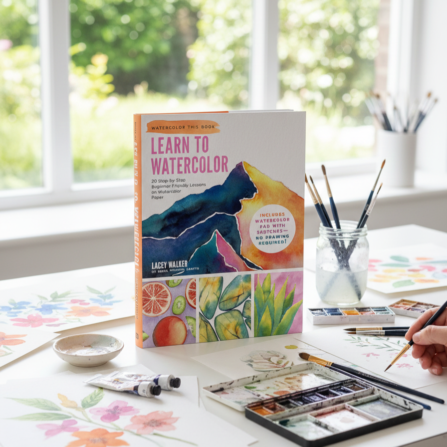 The book includes 20 guided watercolor projects, a paintable watercolor paper pad, pre-drawn outlines, a complete tools and materials guide, and QR-linked video tutorials to support visual learners. Everything is structured to remove guesswork and reduce learning friction.